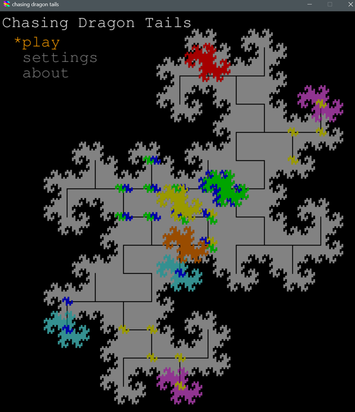 arcade game based on the twin-dragon fractal (requires browser with wasm support)